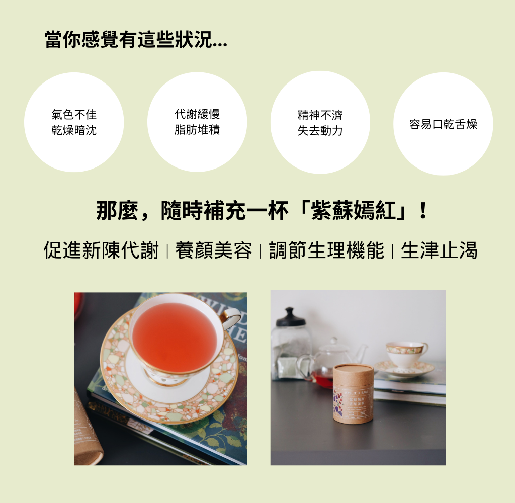 內容物: 紫蘇、洛神花、綠薄荷、甜菊