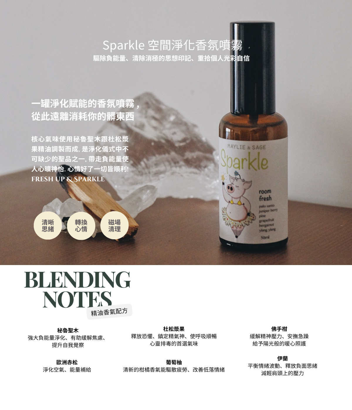 用法:噴灑於空氣或織品,淨化空間